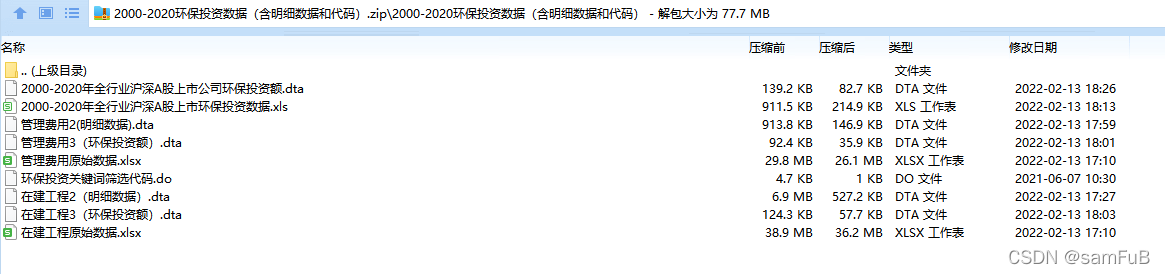 计算思路通过筛选为上市公司财务报表附注的在建工程、其他应付款、管理费用中与环保投资有关的关键词,获得相关的环保投资数据。但是由于(在建工程、管理费用)和(其他应付款)分属于资产负债表借贷的两端,直接加总可能涉及重复计算,因此,仅选用在建工程、管理费用两个项目进行筛选。筛选关键词和代码在分享文件中有。