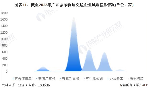 根据中国企业数据库企查猫,目前广东省存续和在业的城市轨道交通企业共8989家,其中1669家企业有裁判文书,588家企业存在经营异常,676家企业有行政处罚。