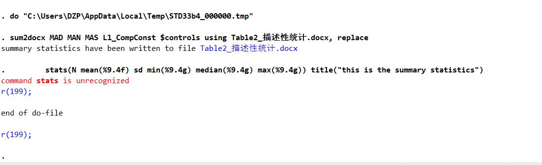 请问STATA在做描述性统计分析的时候输入命令一直显示stats不能识别,但是我是安装了外部命令了的,求大佬救救孩子叭,试了好久都是这样,求大佬解答。