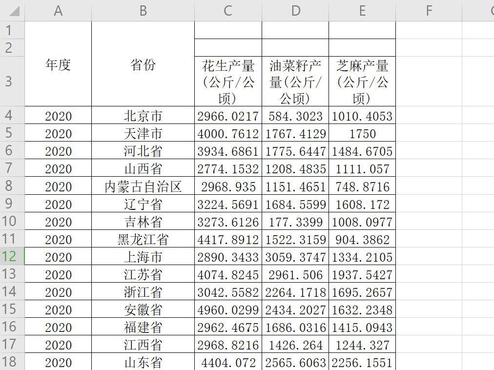 指标包括:花生产量(公斤/公顷) 油菜籽产量(公斤/公顷) 芝麻产量(公斤/公顷)