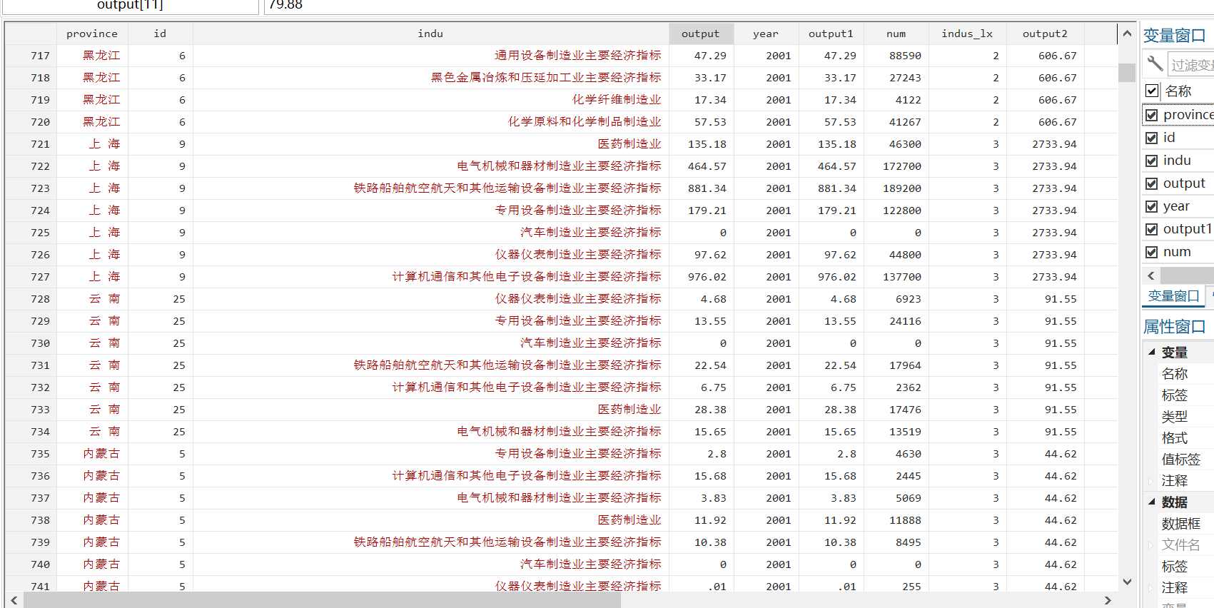 如何求同一省份每一年indus_lx=3对应的output2 除以indus_lx=2对应的output2?数据如图所示,感谢大家了!!!