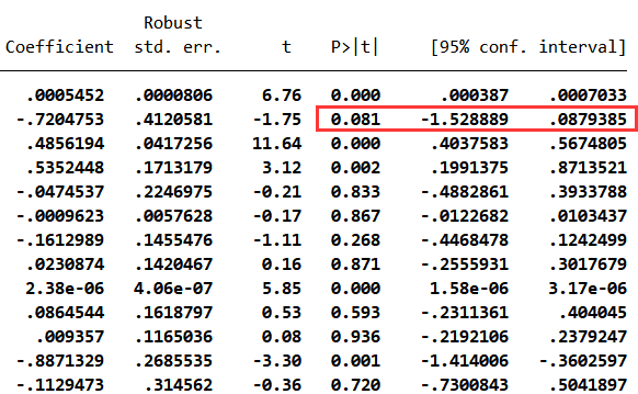 想问一下 P值小于0.1算显著吗 但是stata里做出来没有星号而且置信区间包含0