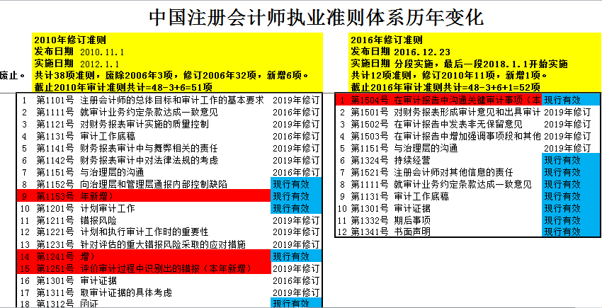 历年审计准则修订汇总表(直观的显示每项审计准则哪年发布的才是现行有效的).xlsx
