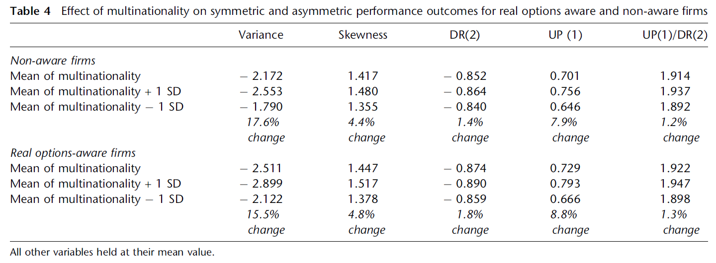 左边第一列是分两组,上面 是无实物期权意识的公司,下面是有实物期权意识的公司