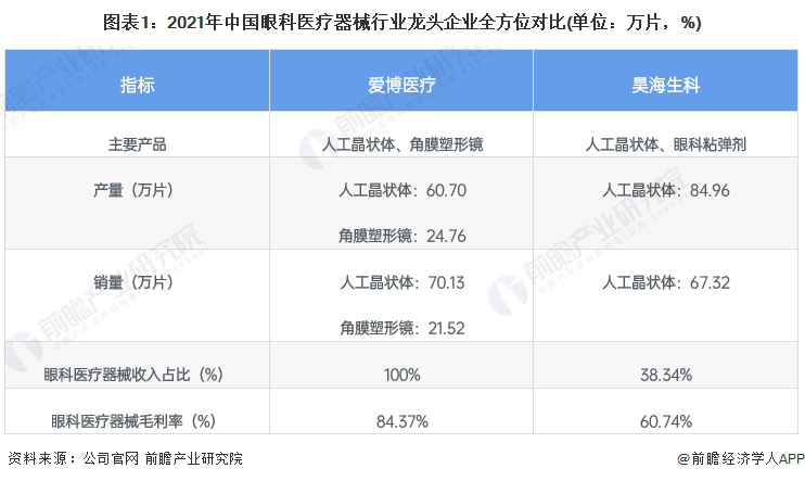 1、中国眼科医疗器械行业龙头企业全方位对比