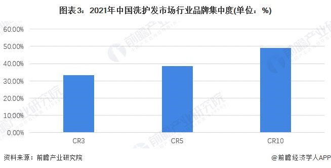 中国头发护理产品市场激烈的竞争导致各大领衔品牌正在失去总市场份额。前瞻根据公司的公报、相关行业的市场竞争规模以及欧瑞提供的数据,对中国洗发护发行业的市场集中度进行了合理的测算。目前宝洁、联合利华、拉芳、欧莱雅集团五大家仍主导市场。但2012-2021年厂家CR5由65.30%下降到约56.3%,品牌CR5由45%下降到38.7%,外资龙头市场份额有被崛起的小品牌切分的趋势。总体来看仍处于较高水平,且行业头部利润仍旧把握在外企手中。
