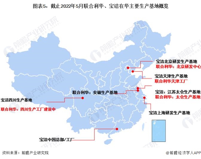 国际龙头企业联合利华和宝洁均在中国进行了工厂的建设布局,包括产品研发中心、运营总部以及生产基地的建设,宝洁在中国一共有10个生产基地及工厂,目前有6条生产洗发护发相关产品,联合利华在中国也布局了6个生产基地,可见对中国洗发护发行业的市场有着绝对的重视。