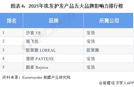 2021年世界洗发护发品牌前五名影响力的品牌中,沙宣作为宝洁公司洗发水品牌中的后起之秀,凭借国际著名美发专家维达·沙宣自身的影响力以及创新精神获得行业五大品牌影响力之首。前五名中,宝洁独占四席,可见影响力之大。