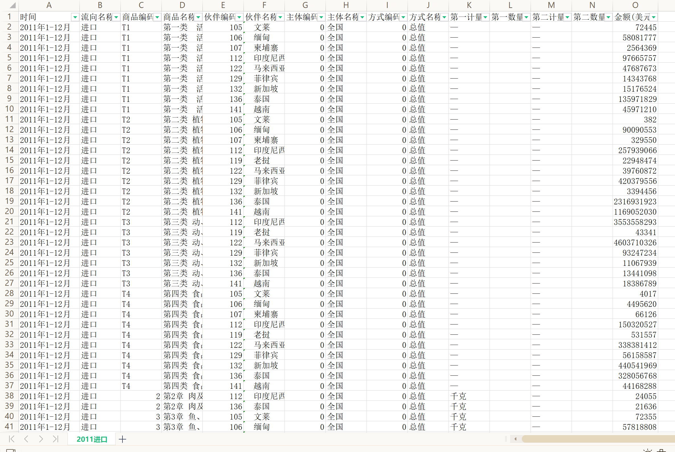 表格按年份分开来了,总数据是2011年到2021年的进出口