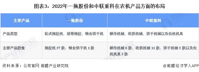 ——农机产品布局:一拖股份产品数量多,中联重科产品类型更丰富