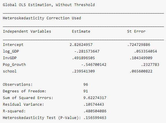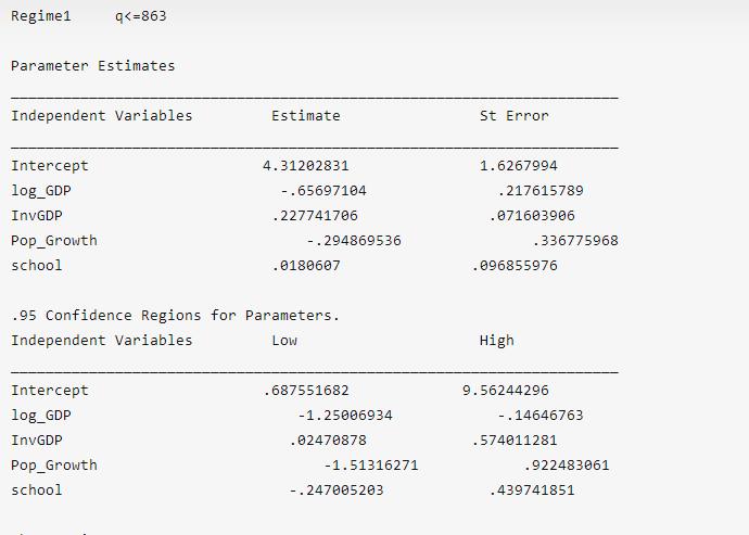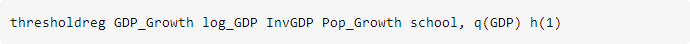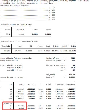 6+11 发表于 2022-10-27 16:03 黄老师,谢谢答复!我理解的863是门槛值。我想问的是在863之前的GDP的系数即门槛变量的系数是多少?比如图 ...