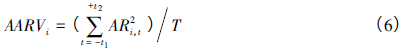 事件窗(-t1,+t2)--[-5, 5]所覆盖的T日内股票i的平均超额收益波动率如下:
