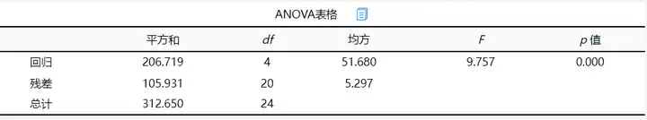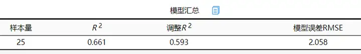 回归方程的显著性检验中,统计量_F_=9.757,对应的_p_值小于0.05,通过检验,说明模型显著。然后对模型拟合优度进行简单查看。