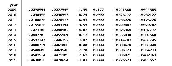 嘻嘻哈哈冒菜 发表于 2022-10-31 14:56 我就是普通的reg线性回归,控制了行业和年份,reg y x controls i.year i.industry,robust