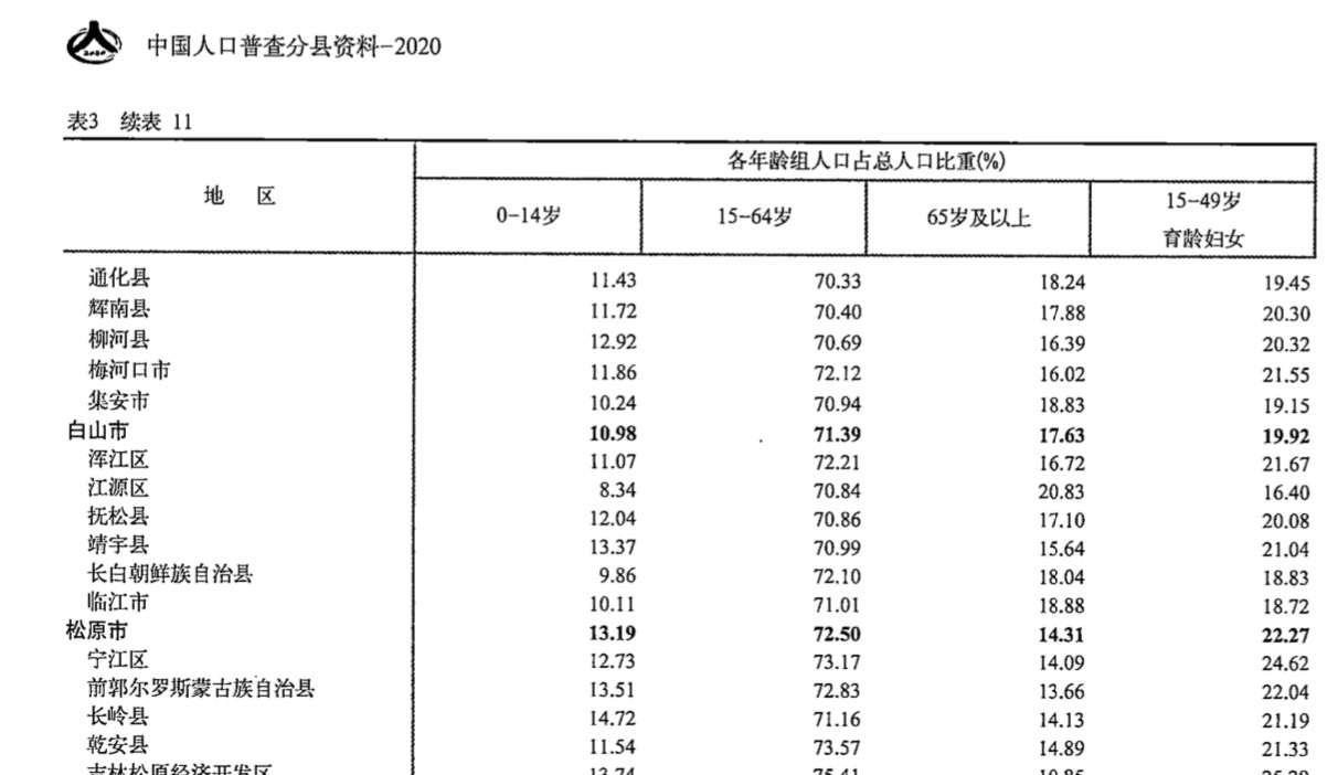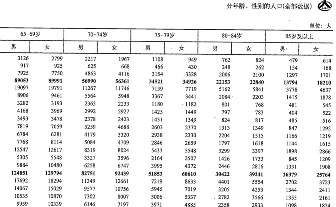 2020年第七次人口普查区县长表数据-2020年各区县分年龄性别人口年龄比重老年人口