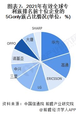 就只包含声明为5G专利的“5Gonly专利族”来看,排名前十的企业5G only专利族占全部有效全球专利族的73.7%。其中,华为仍然以15.2%的5Gonly专利族占比排名全球第一,远超中兴通讯的6.3%,说明华为针对5G新引入技术进行的创新能力较强。
