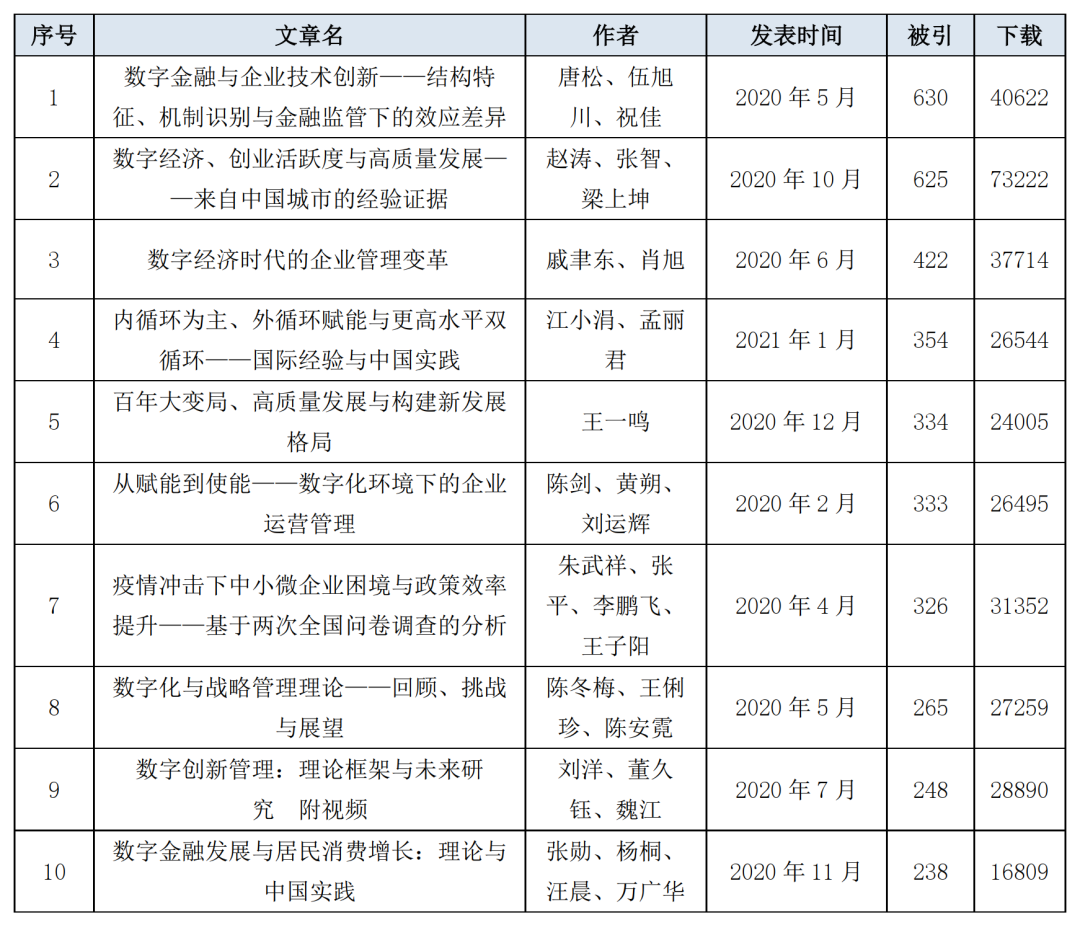 图3 近两年《管理世界》高被引论文(2020~2021年)