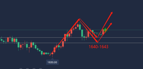 建议黄金回踩下方1640和1643分批多,止损1629,目标1655-1656;(以上建议仅供参考,盈亏自负,做单严格设置好止损止盈)