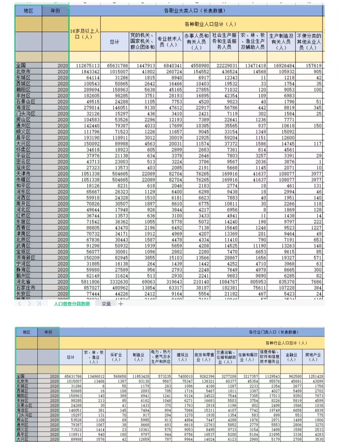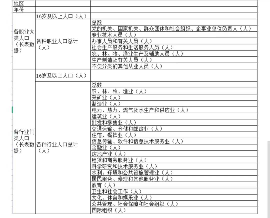 2020年中国第七次人口普查分县资料-3:各职业人口、各行业人口