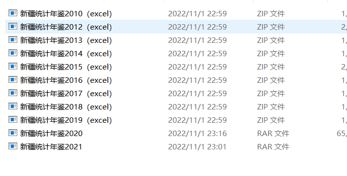 2010年-2021年的新疆统计年鉴,全部为excel格式,有需要的可以下载。