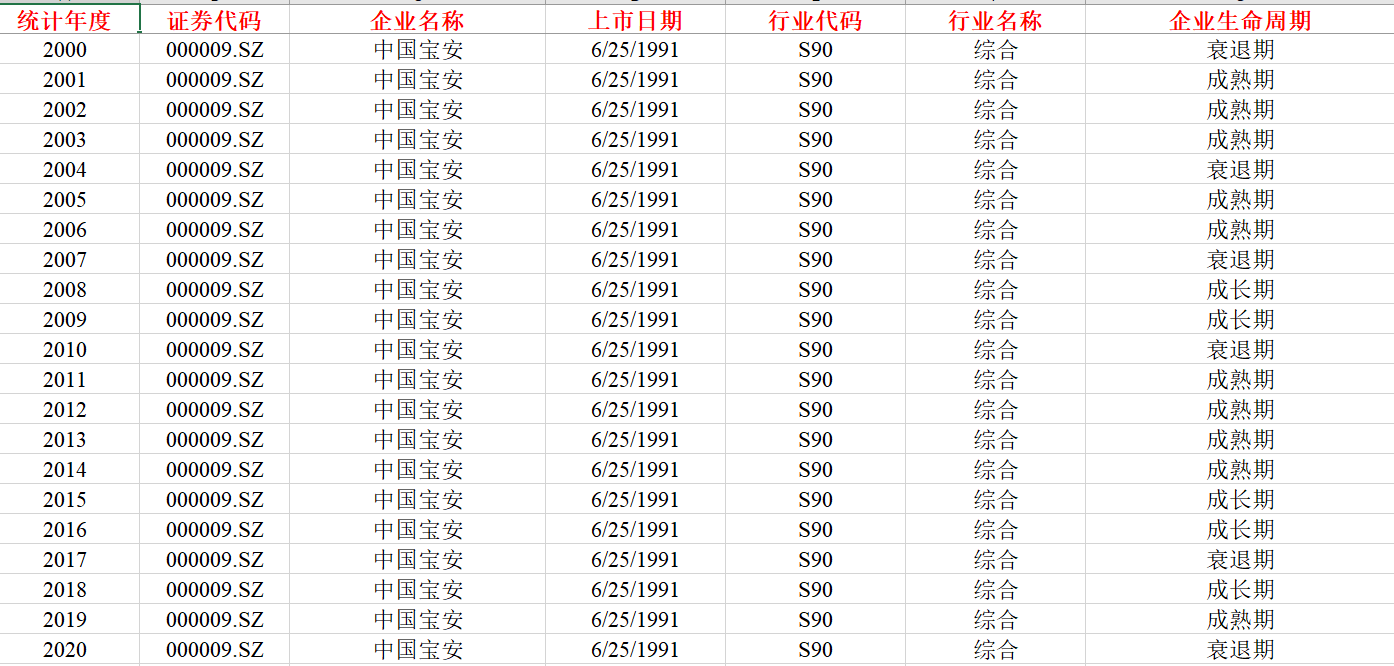 2000-2020年上市企业生命周期数据,样本时间新,数据量大,基本可以满足毕业论文写作和科研需求。数据真实可靠,辛苦整理所得,分享给大家,希望对论坛各位同学毕业论文以及论文发表有所帮助。分享这份数据一是为了贴补家用,二是为了共享知识,希望诚心需要的同学下载使用,使用过程中如有任何疑问,可以加q2961096086交流心得。衷心祝愿论坛各位同仁毕业和发文顺利!整理的非常完整,十分规范,排版也很漂亮,节省您大量收集与整理时间,绝对物有所值!