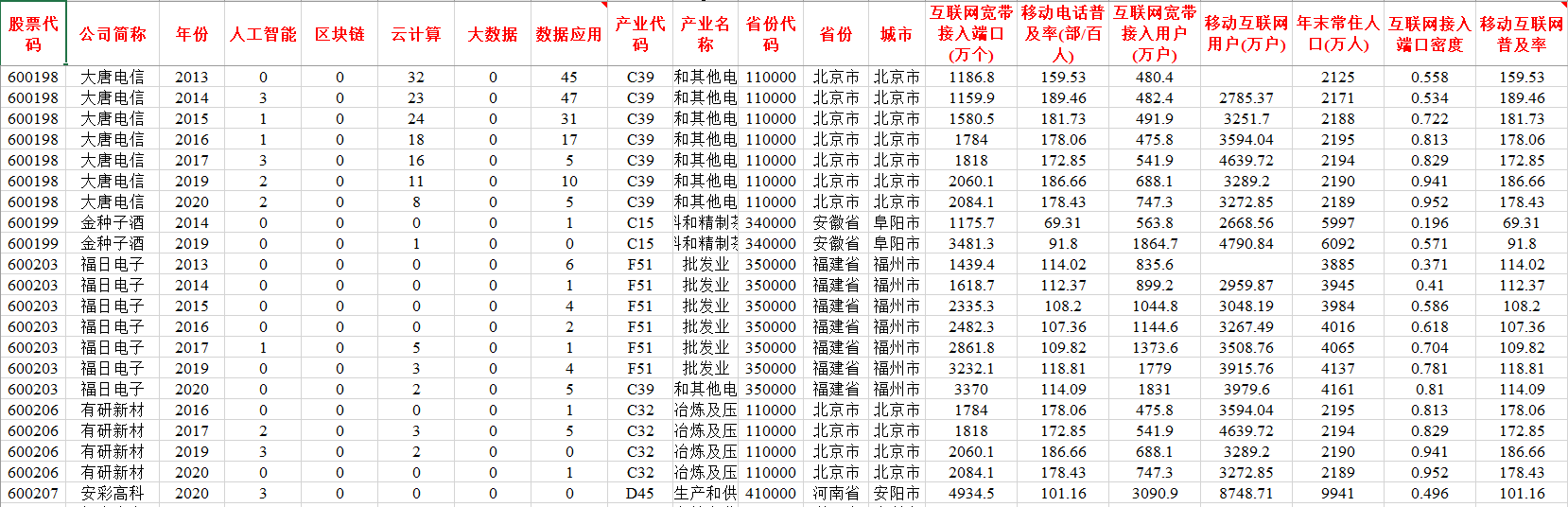 2013-2020年上市企业数字经济数据,样本时间新,数据量大,基本可以满足毕业论文写作和科研需求。数据真实可靠,辛苦整理所得,分享给大家,希望对论坛各位同学毕业论文以及论文发表有所帮助。分享这份数据一是为了贴补家用,二是为了共享知识,希望诚心需要的同学下载使用,使用过程中如有任何疑问,可以加q2961096086交流心得。衷心祝愿论坛各位同仁毕业和发文顺利!整理的非常完整,十分规范,排版也很漂亮,节省您大量收集与整理时间,绝对物有所值!