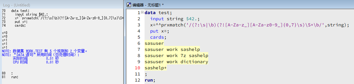 我想要构造一个正则表达式,判断一串文本中,是否包含不可以用作SAS逻辑库名的单词。SAS逻辑库命名规则如下: