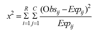 列联表是一种比较简单的描述性统计方法,而卡方检验则可以通过量化的方法对两个分类变量的相关性进行检验,卡方统计量如下:
