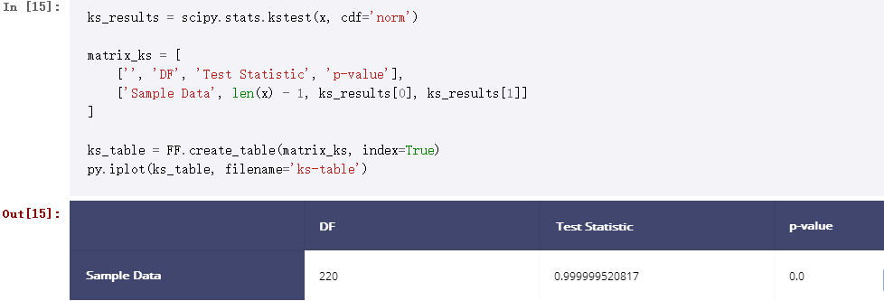 由于我们的p值为0.0(意味着考虑到测试的小数精度,它实际上是“0”),因此我们有强有力的证据表明不应该拒绝零假设。