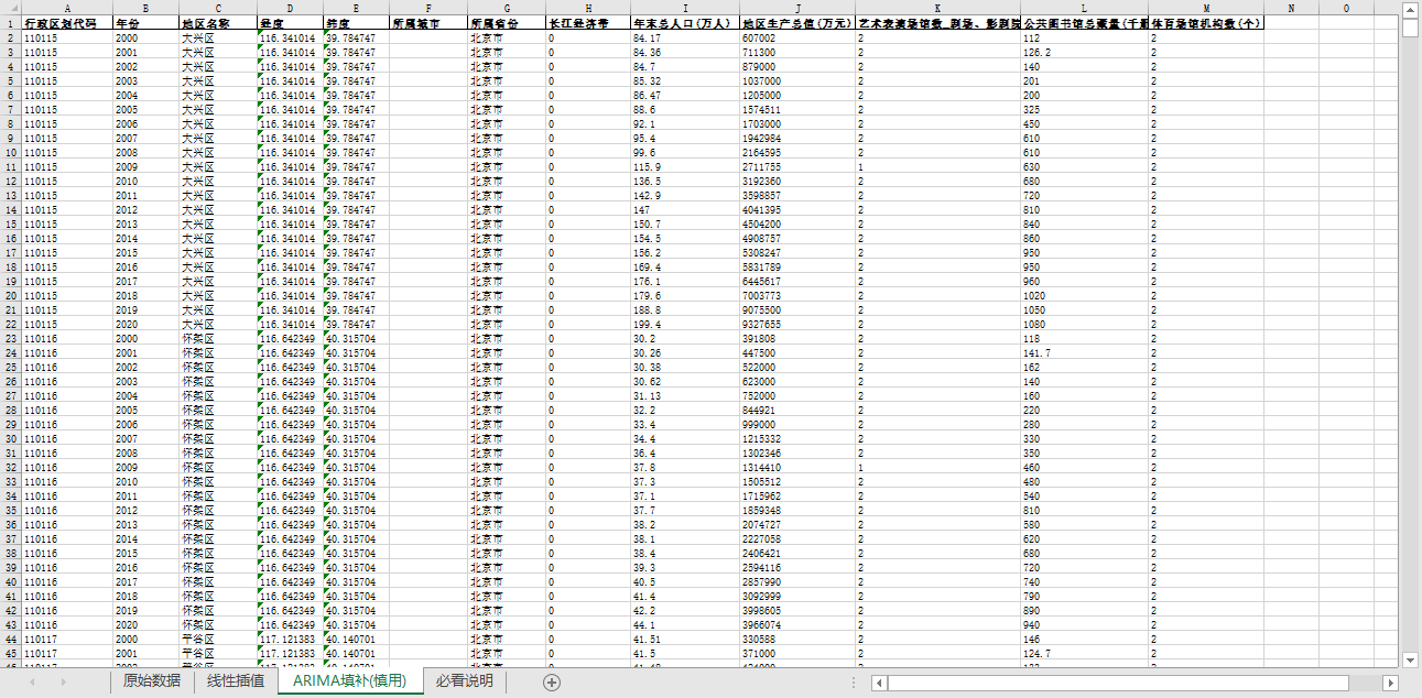 excel数据文件包原始数据(由于多年度指标不同存在缺失值)、线性插值、ARIMA填补三个版本,提供您参考使用。
