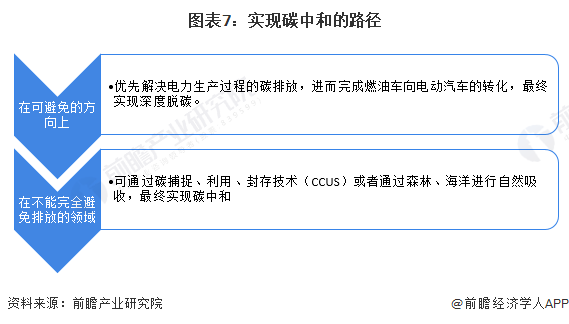 在不可避免的方向上,国家提出优先解决电力生产过程的碳排放,进而完成燃油车向电动汽车的转化,最终实现深度脱碳。在不能完全避免排放的领域,可通过碳捕捉、利用、封存技术(CCUS)或者通过森林、海洋进行自然吸收,最终实现碳中和。
