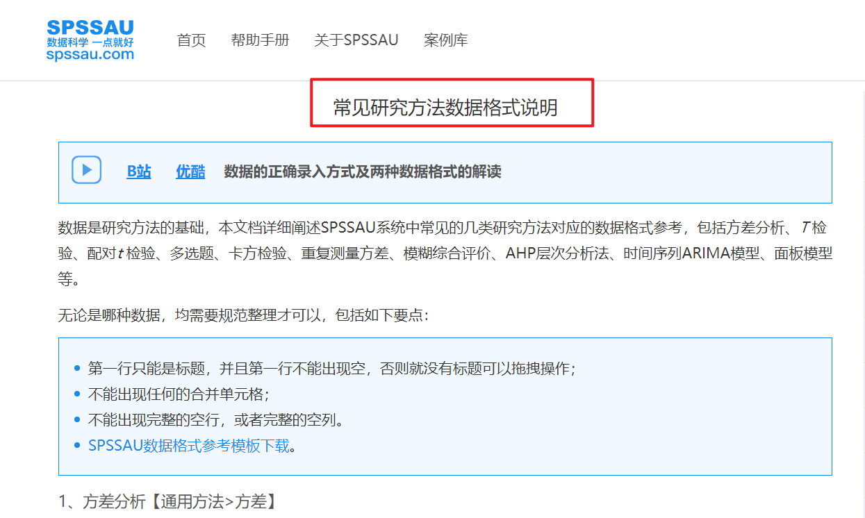 SPSSAU帮助手册包含绝大部分数据格式说明