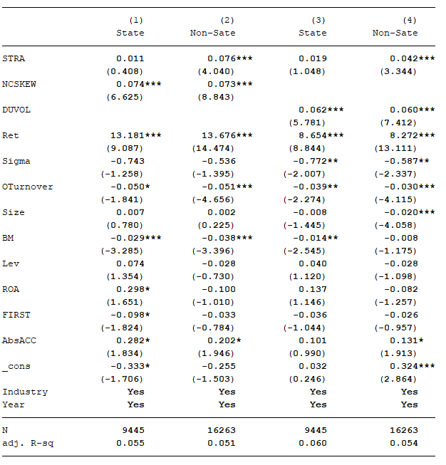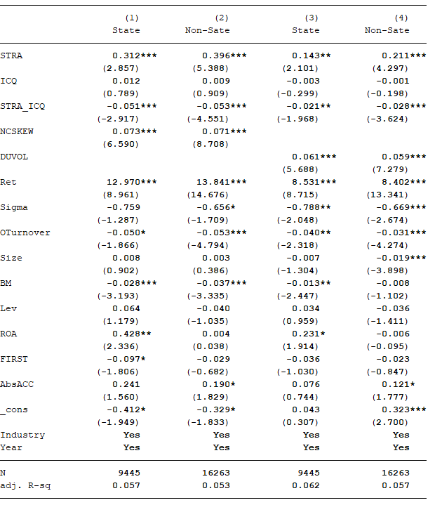 假设3 战略差异与内部控制的交互作用对股价崩盘风险的影响
