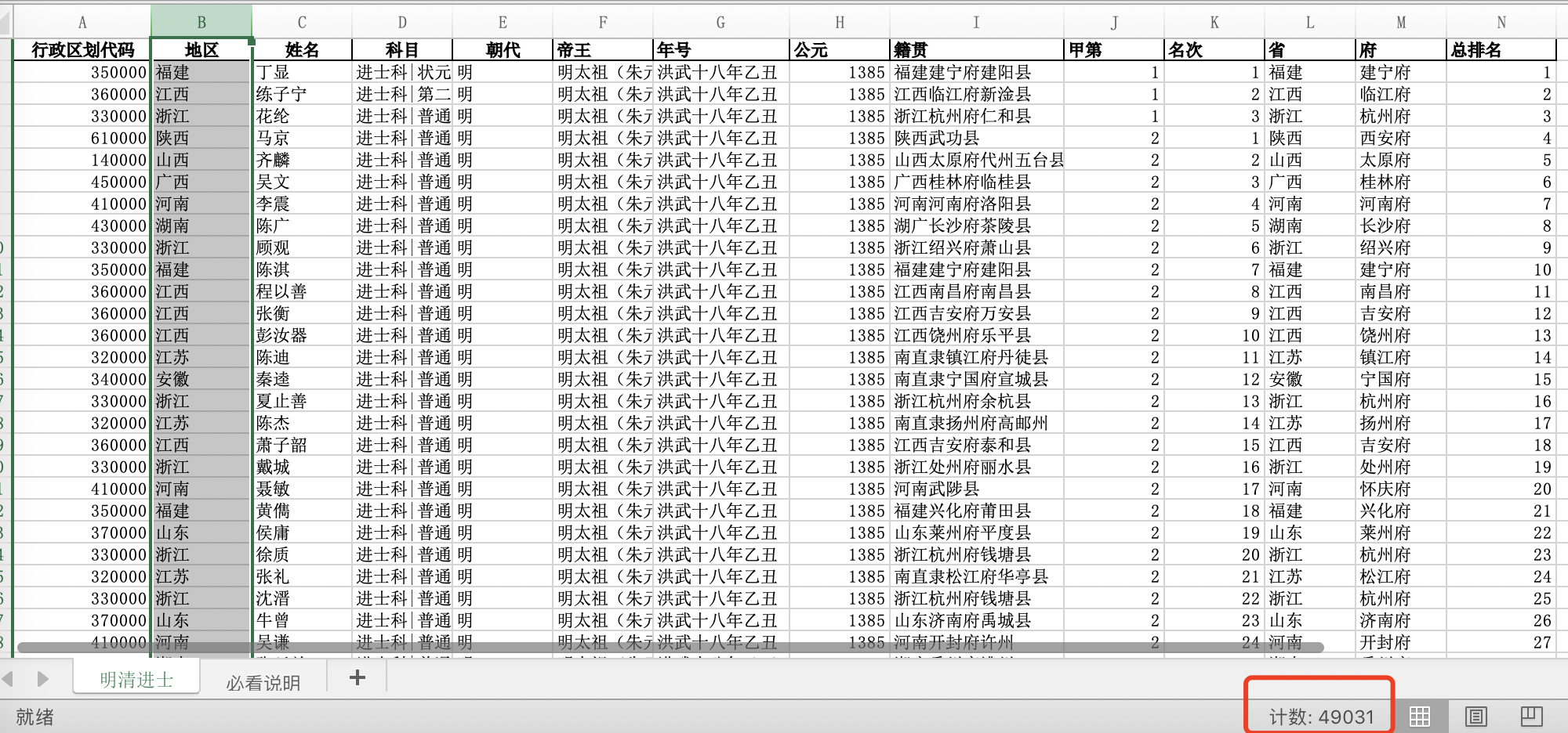 数据名称:《明清进士题名碑录》-明清进士数据匹配(可作工具变量)