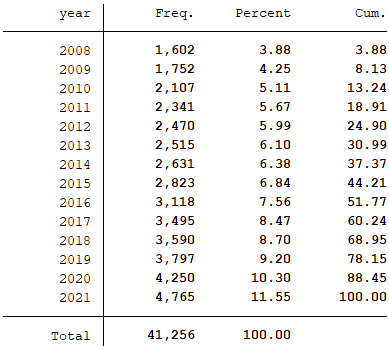 样本选择:全部A股2008-2021年数据(“金融背景”在数据库中是从2008年开始,所以数据起点为2008年)