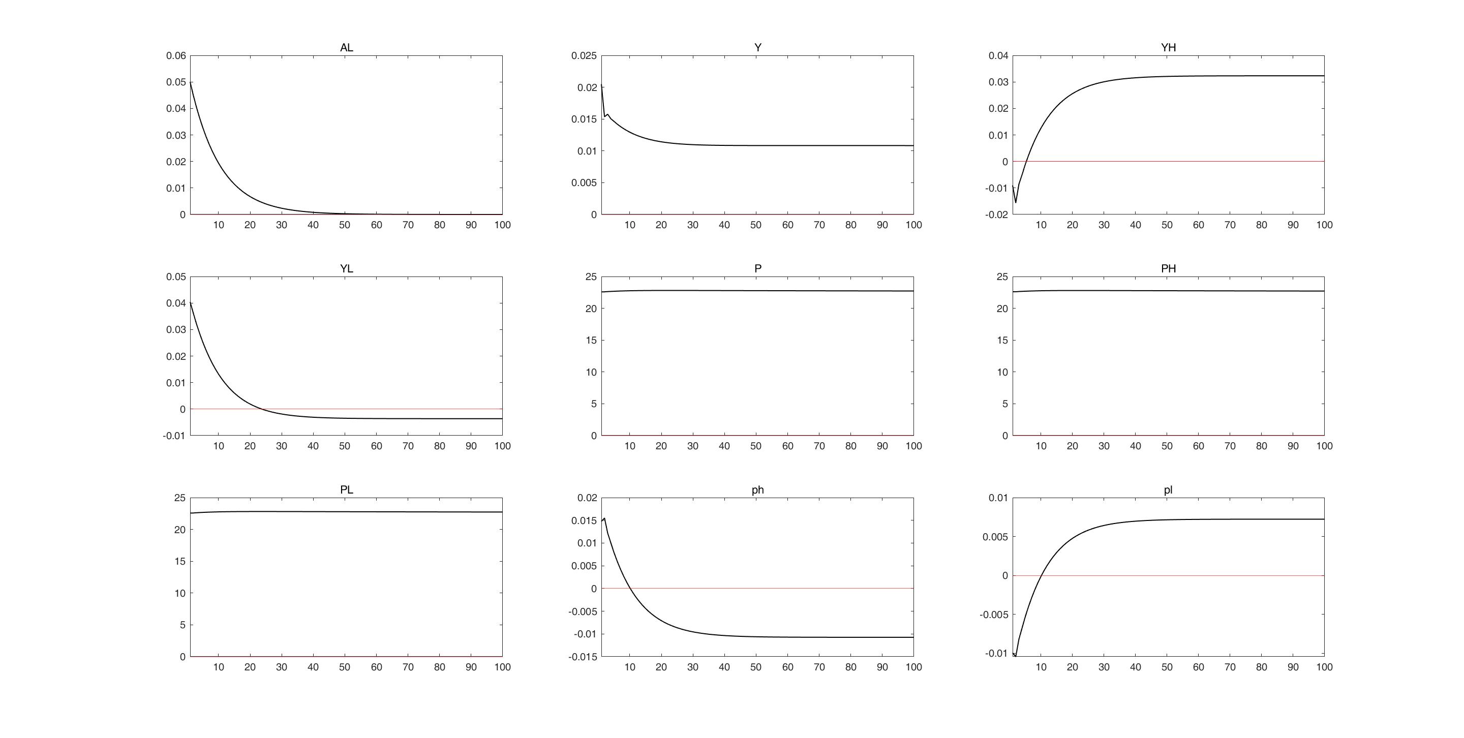 求救!!模型冲击之后回不到稳态,价格等变量为直线....时期放到2000期后,基本上才回到稳态...