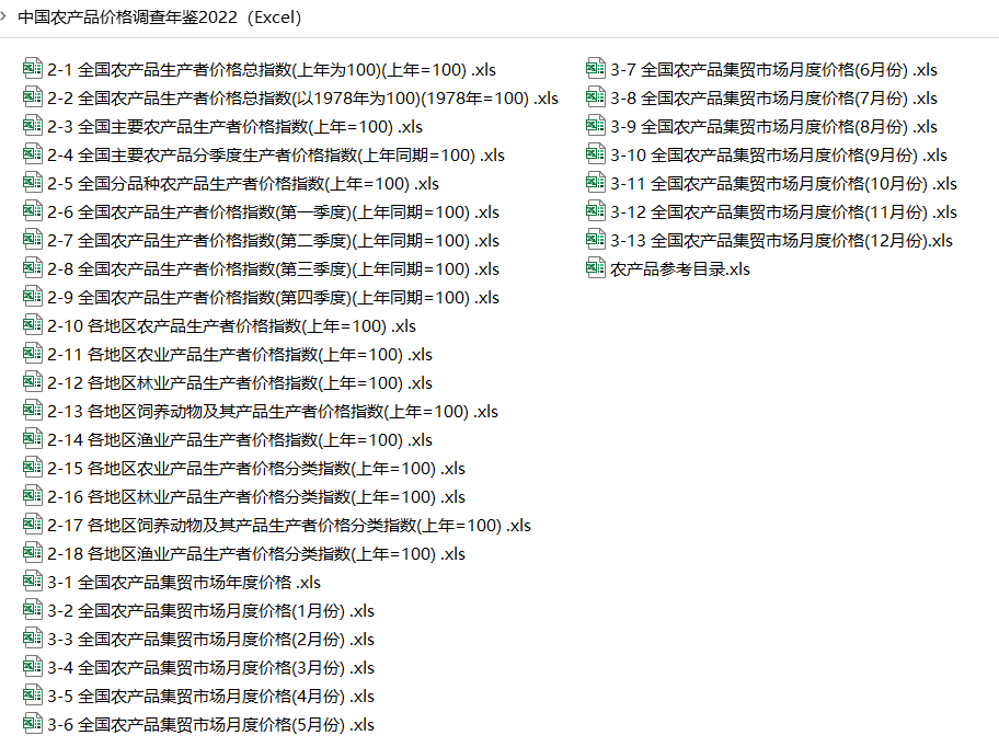 中国农产品价格调查年鉴2022(Excel)