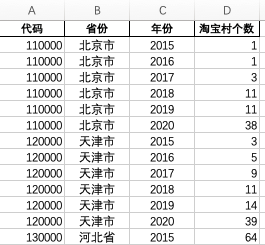 2015-2020年各省农村淘宝村个数、合作社数量、现代农业产业园数等数据