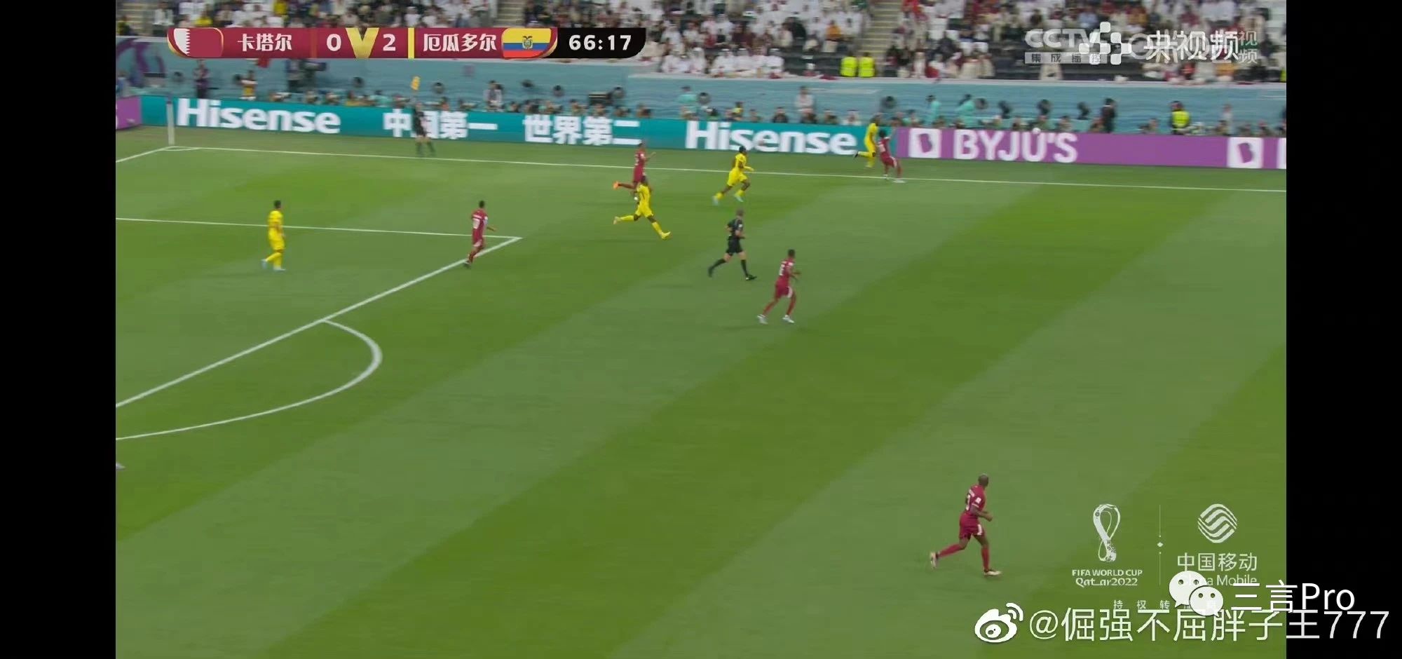 有不少网友在看了首场比赛后,惊叹“中国企业广告包围世界杯球场”。