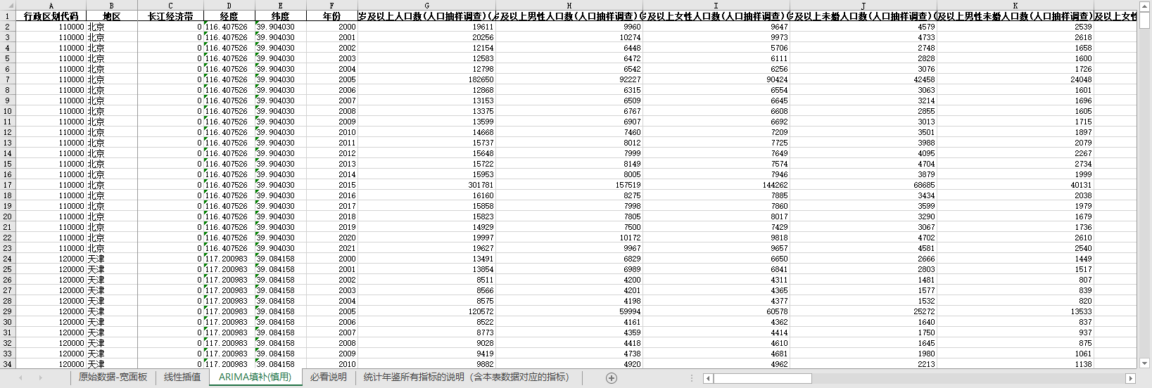 ARIMA填补。基于ARIMA模型,利用同一地区的时间序列数据,对缺失值进行预测填补。