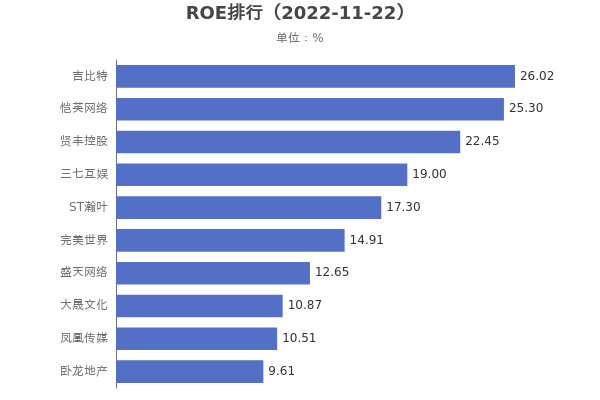 ROE排名TOP5上市公司:吉比特、恺英网络、贤丰控股、三七互娱、ST瀚叶。