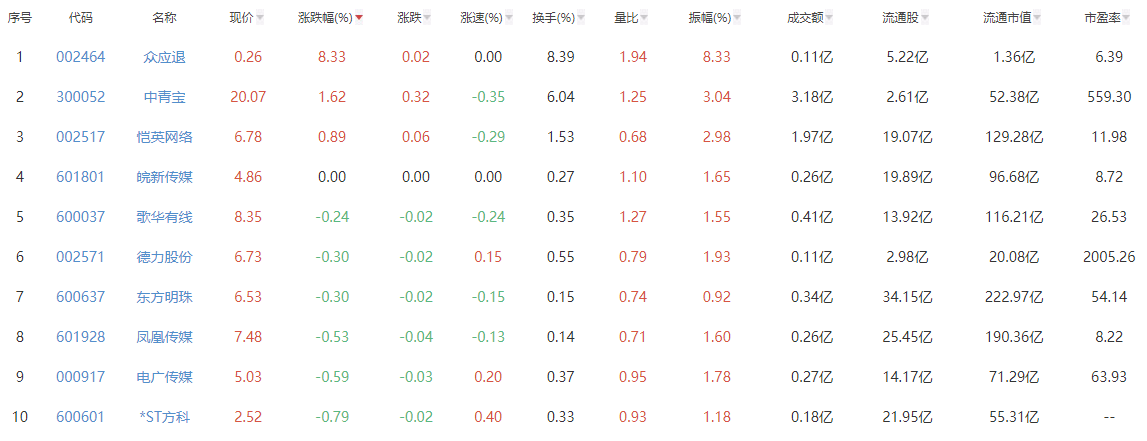 流通市值排名TOP5上市公司:三六零、三七互娱、世纪华通、完美世界、万达电影。
