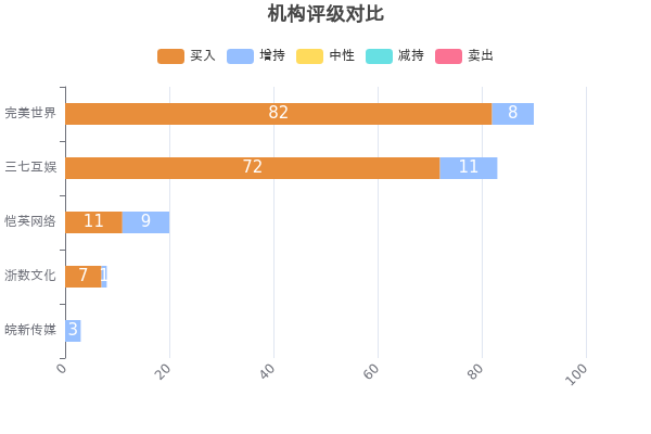 完美世界近12个月,26家研究机构出具的82份研报将其列为“买入”等级,8份研报将其列为“增持”等级。