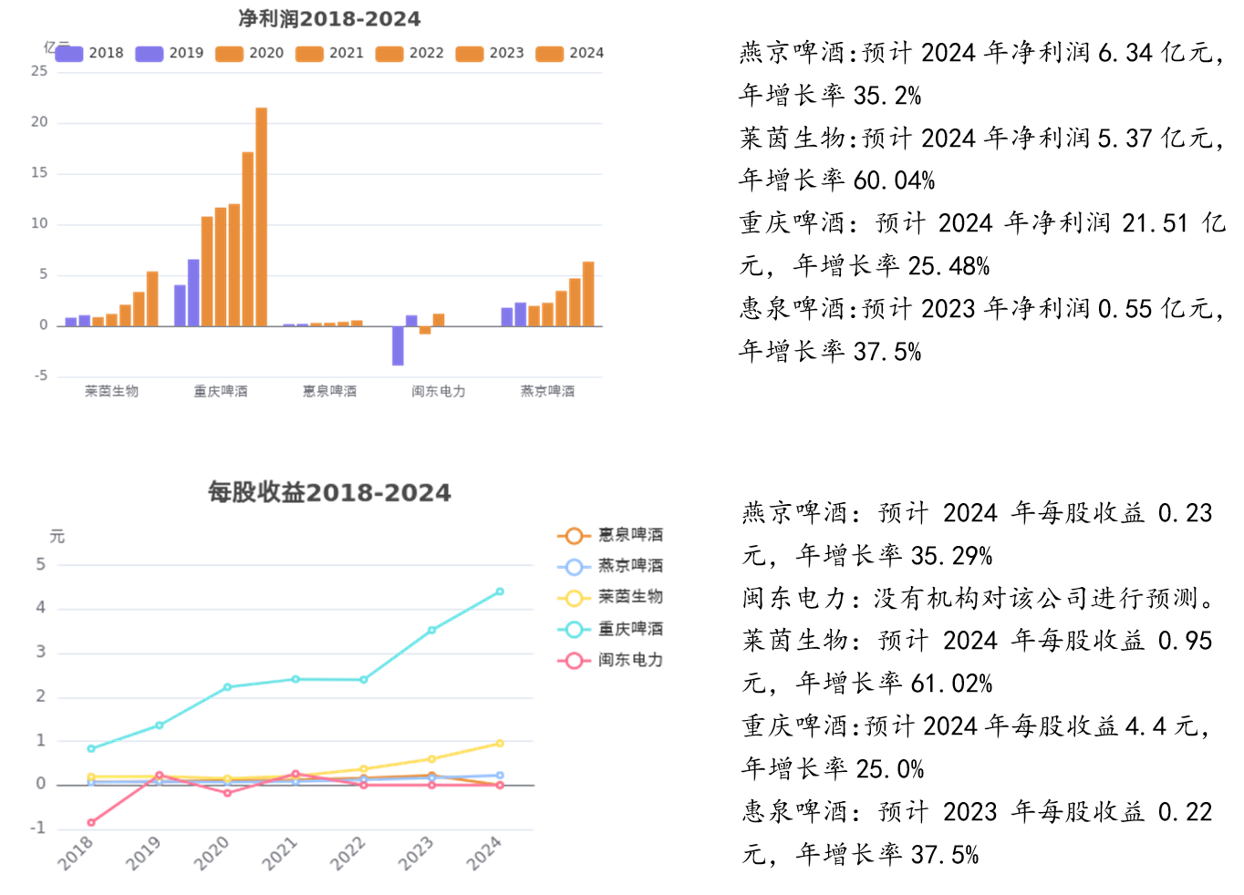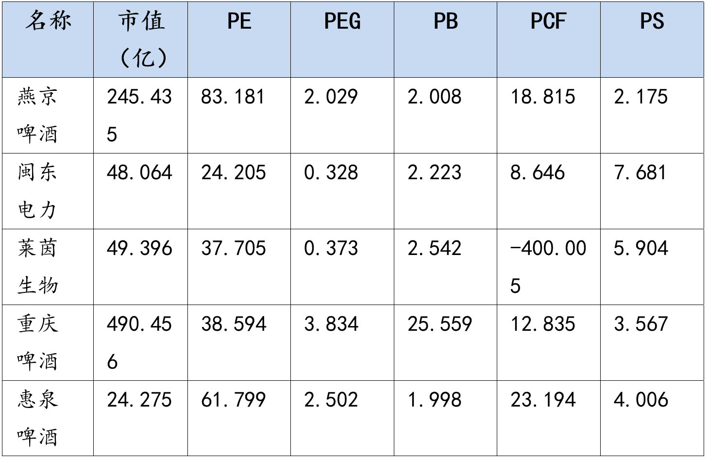 啤酒概念成长潜力居前的5只股票,估值情况如下表所示: