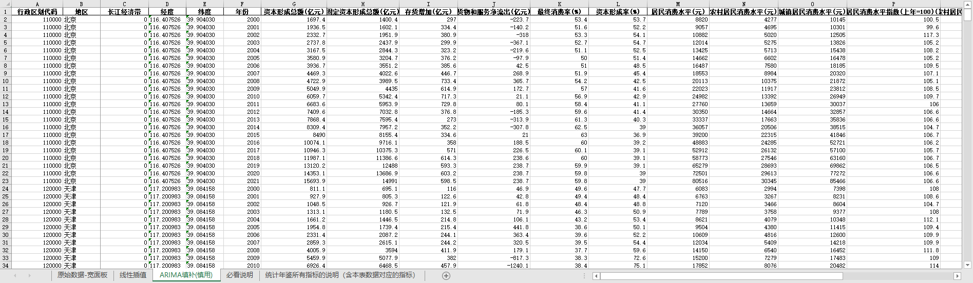 全国31个省份固定资本形成总额城镇农村居民消费水平指数2000-2021含无缺失值填补.xlsx