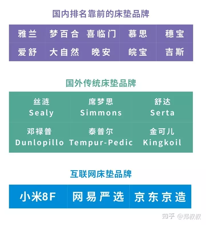 国内外知名床垫品牌一览图源 / 知乎用户郑叔叔