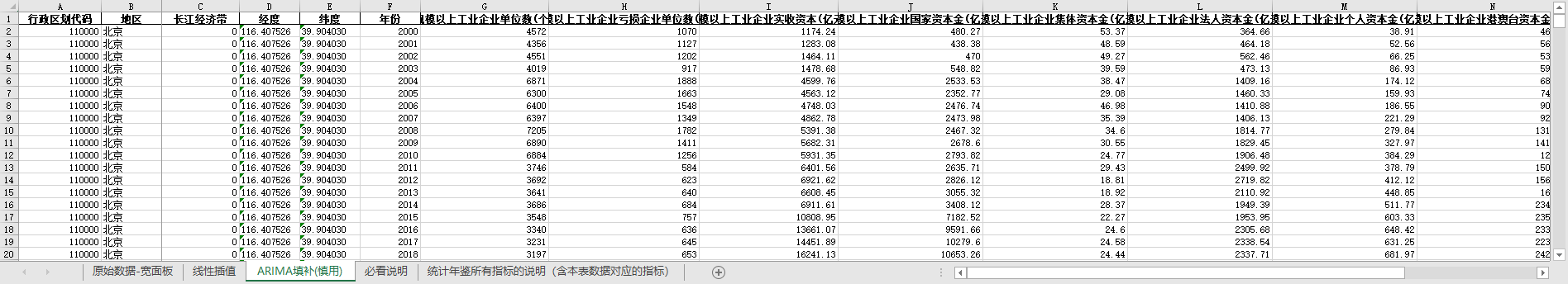 ARIMA填补。基于ARIMA模型,利用同一地区的时间序列数据,对缺失值进行预测填补。
