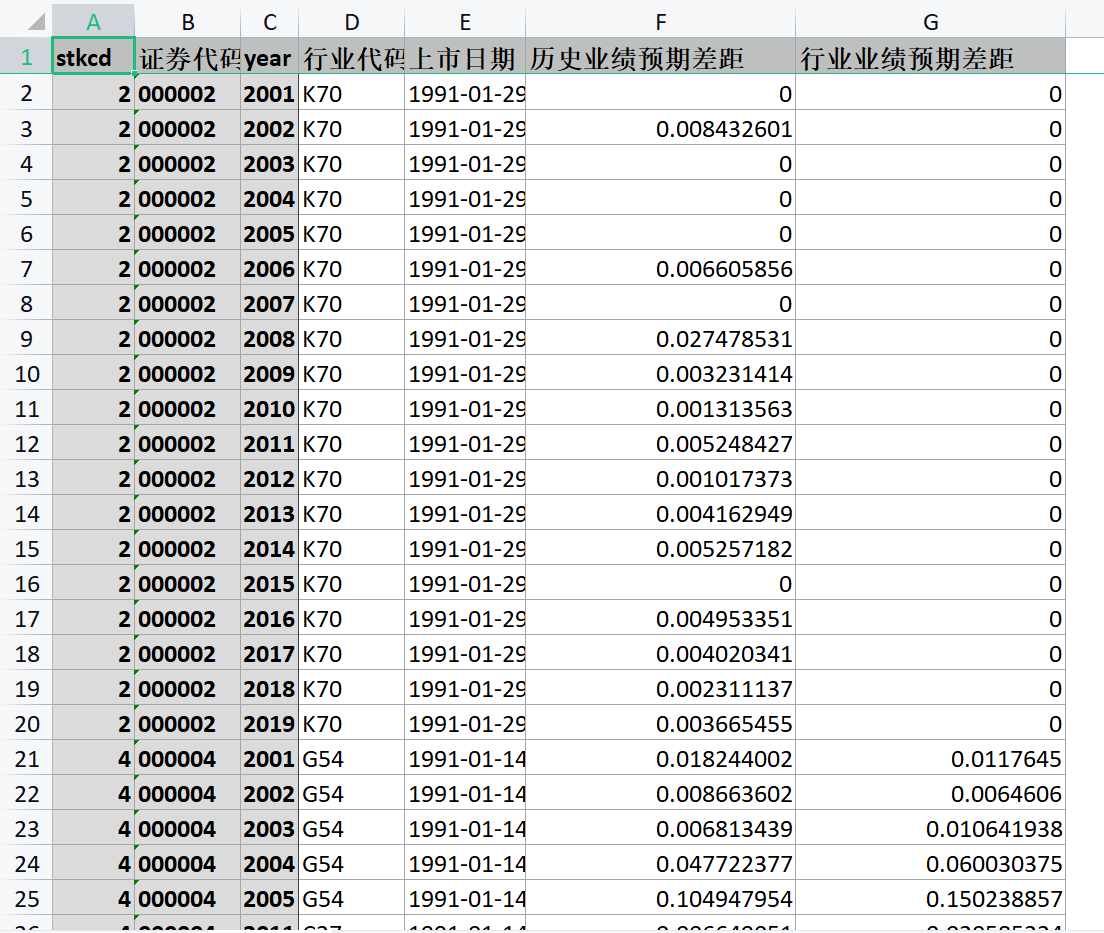主要指标:• 证券代码 • 行业代码 • 上市⽇期 • 历史业绩预期差距