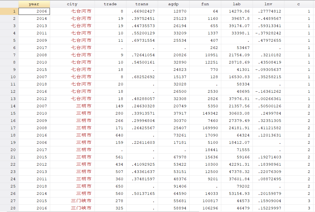 sort c 之后顺序对了,但是城市打乱了,还是原始数据(城市统计年鉴)的顺序