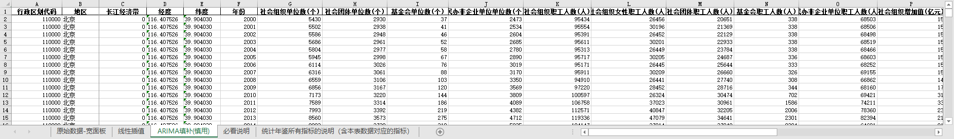 ARIMA填补。基于ARIMA模型,利用同一地区的时间序列数据,对缺失值进行预测填补。